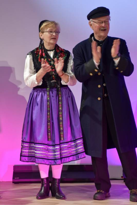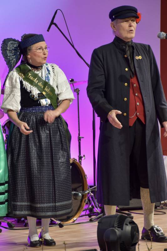 Das ganze Programm wurde umrahmt von Liedern, auch im Flämingplatt. Und natürlich durfte die Annemarie Polka nicht fehlen, bei der die beiden Moderatoren fleißig das Tanzbein schwangen.