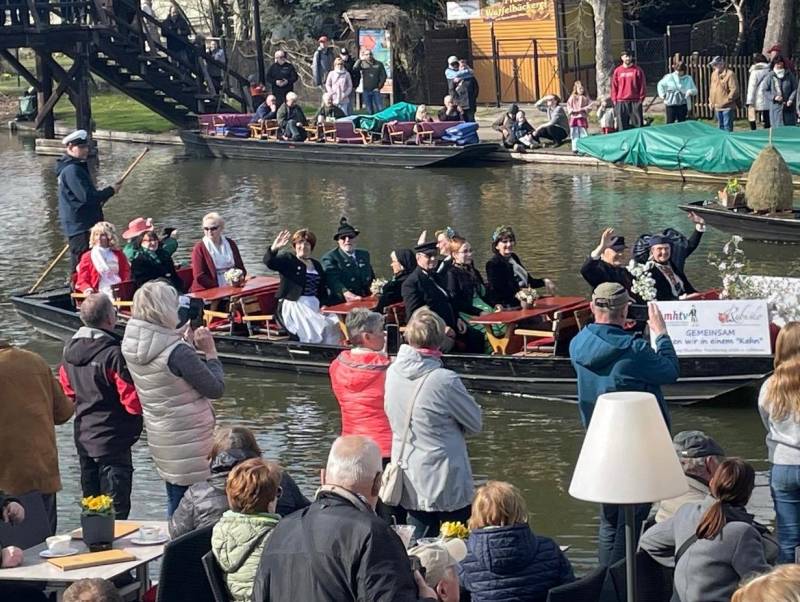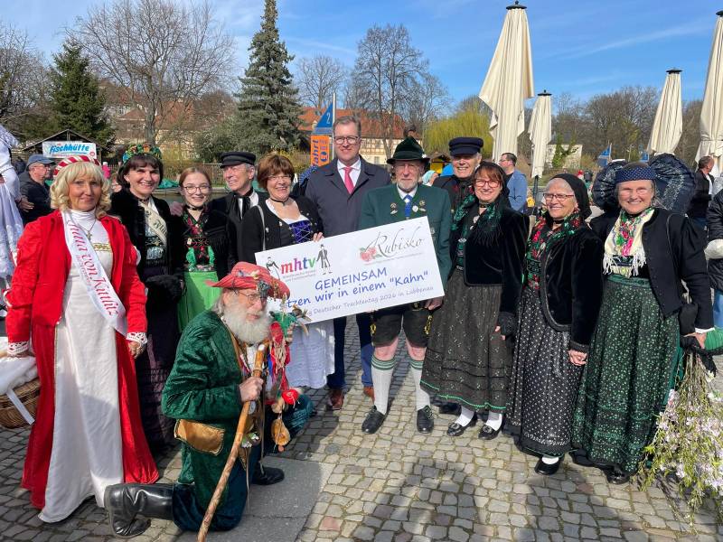Vertreter des Mitteldeutschen Heimat- und Trachtenverbandes e.V. haben am 28. März 2026 an einem kleinen Kahnkorso zur feierlichen Rudelübergabe der Fährleute in Lübbenau teilgenommen, um gemeinsam mit dem ortsansässigen Trachtenverein Rubiško auf den “Deutschen Trachtentag” , der vom vom 29. bis 31. Mai 2026 in Lübbenau stattfindet, hinzuweisen. Dieser wird in Verbindung mit dem “Markt der Traditionen” in Lübbenau veranstaltet.